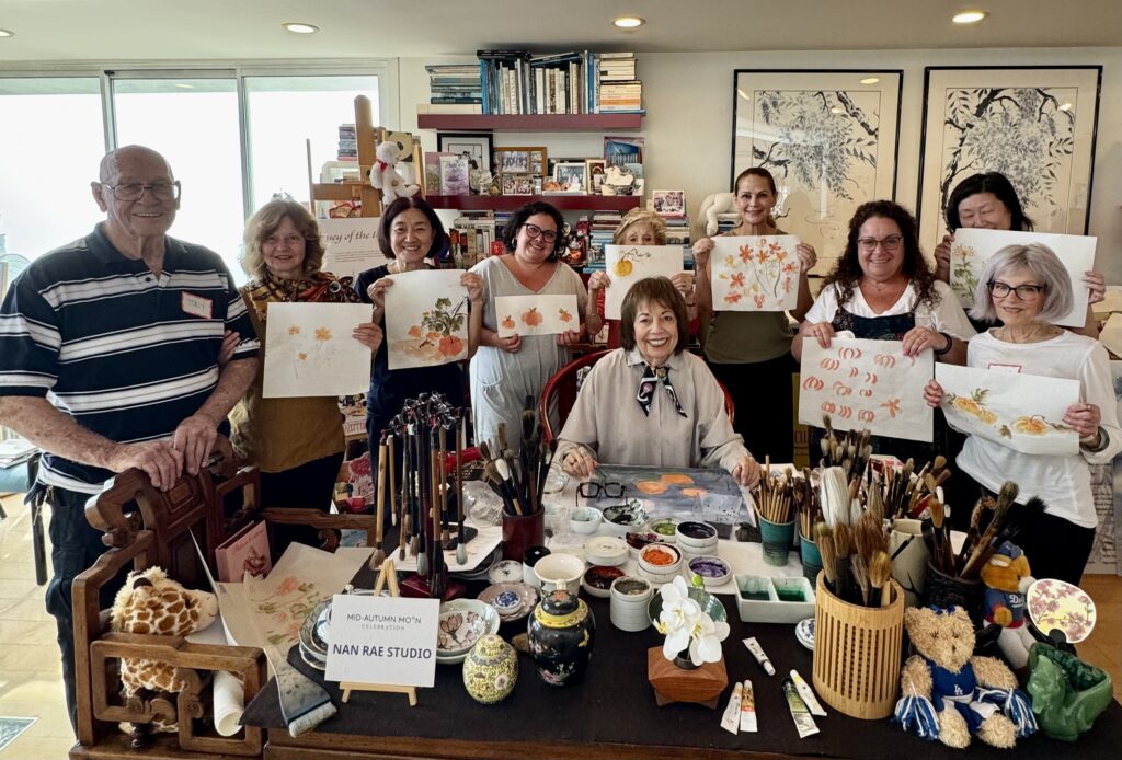 This month’s Brush painting class in the studio was so much fun. It was wonderful to see Tony and to welcome new students, precious Diane (hiding behind her pumpkin painting) and dear Christine.