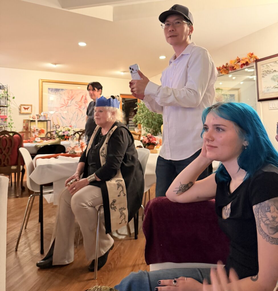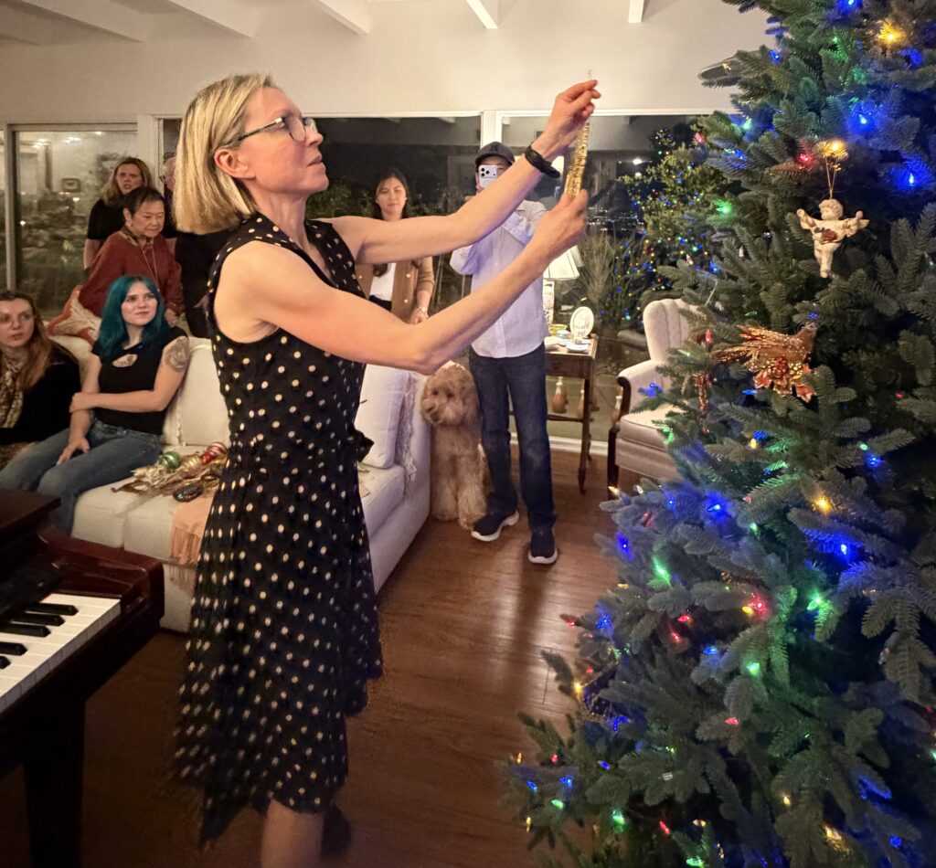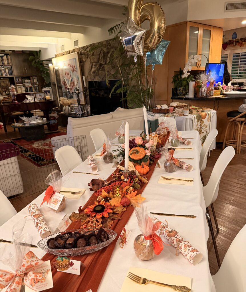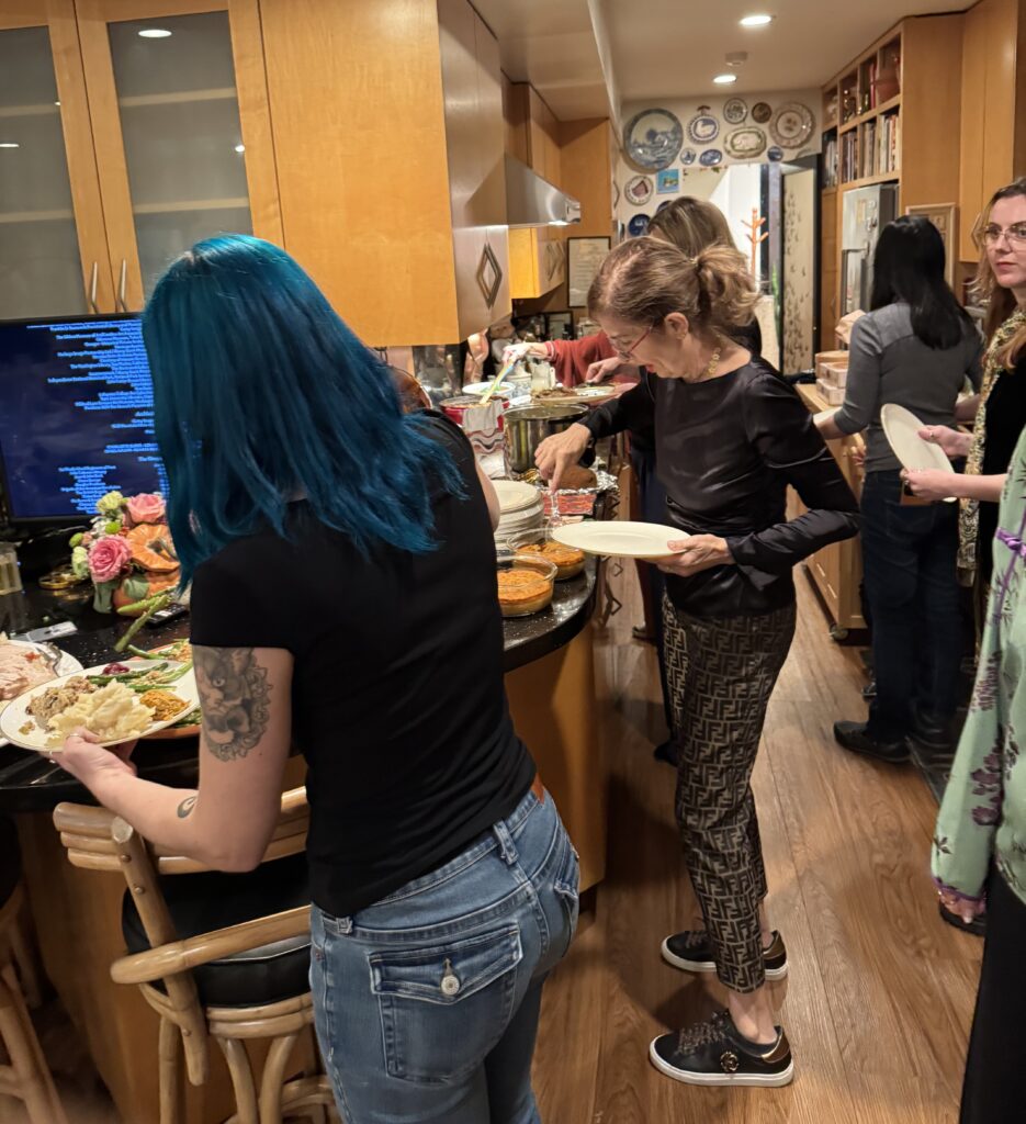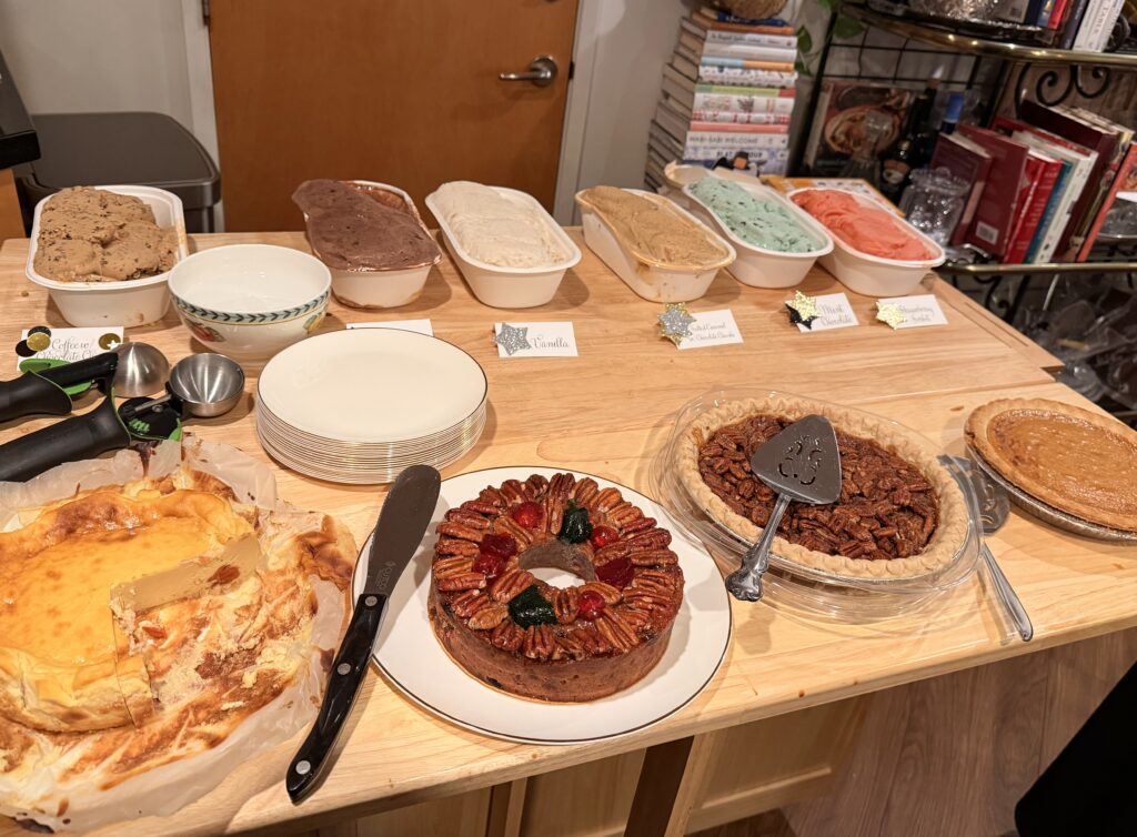 For dessert, there were six flavors of Gelato, thanks to Carol; a pumpkin pie from Patricia; Yi-Lin’s famous cheesecake; and I had ordered two pecan pies and a fruitcake from Collins Street Bakery in Corsicana, Texas.