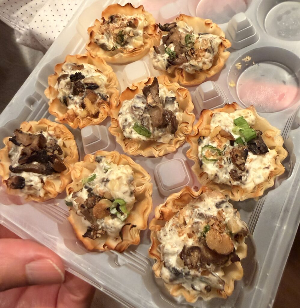 Awesome Nino brought green beans and these amazing Mixed Mushroom and Cheese Mini Tarts!