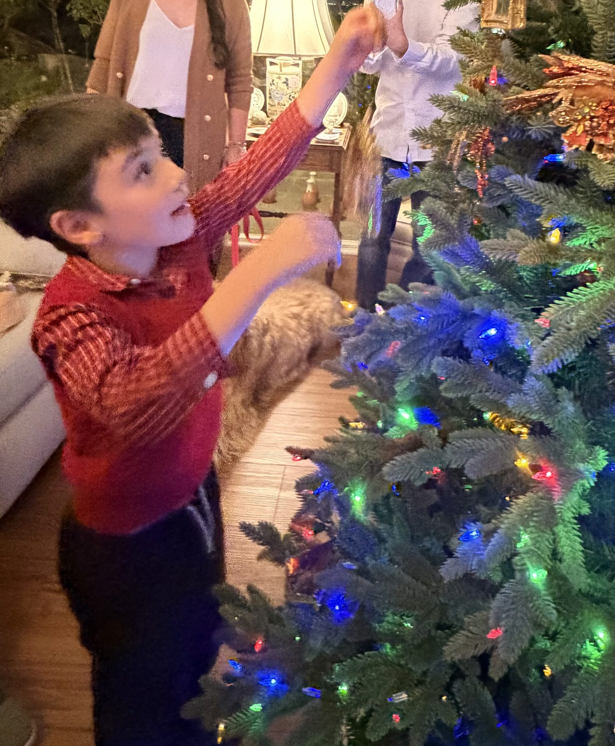 After all that, it was time for the lighting of the Christmas tree and its trimming. Birthday boy Luca was first.
