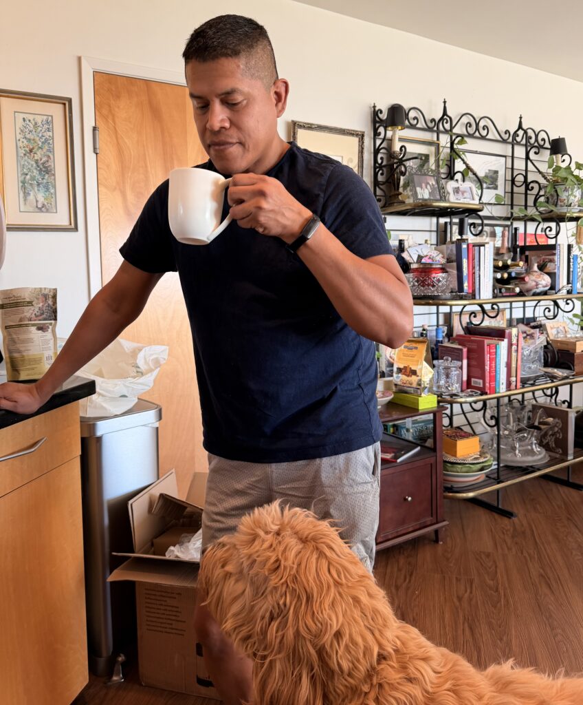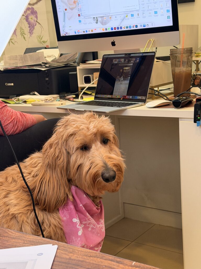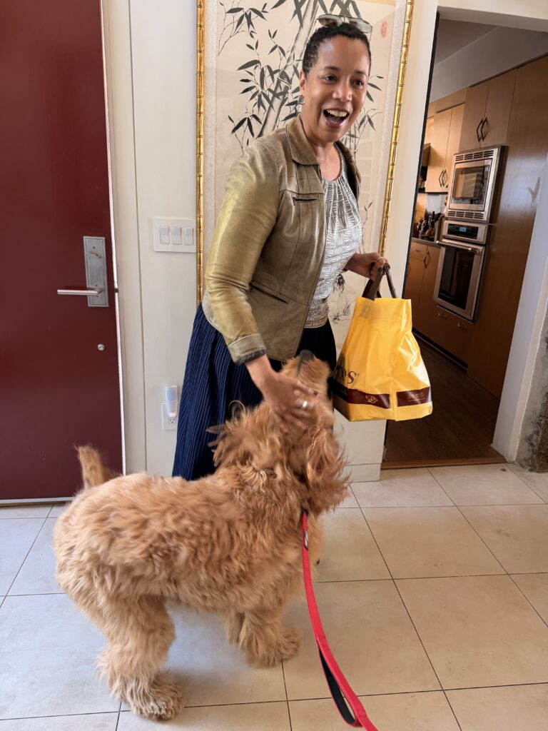 Delightful Becky Birdsong from the Music Center came by with treats from Porto’s. First, Somi, the meeter greeter, had to say hello, and then we were allowed to go to the studio!