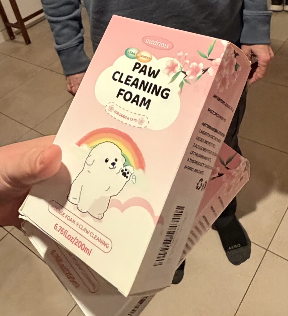 Yi-Lin discovered this wonderful way to clean the fluffer’s paws!
