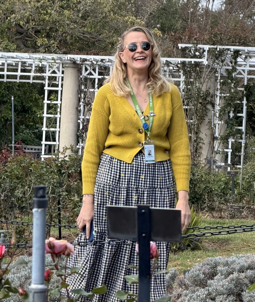 It’s always a joy to have the privilege of some time with brilliant Robert Hori, Curator and Associate Director of Cultural Programs at the Huntington. We were off in the “Nan Rae” cart to meet Danielle, my angel at the Huntington since the nineties.