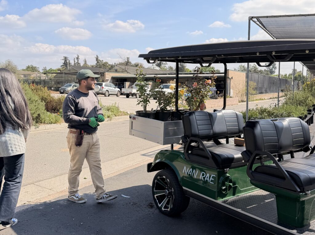 After lunch, we went to the Rose Garden to meet Tom Carruth. Tom is the inventor of over 150 cultivars. He has accumulated 11 All-America Rose Selections (AARS) awards in just 14 years. In 2011, he was the recipient of the Luther Burbank Award for extraordinary achievement in the field of plant breeding from the American Horticultural Society.